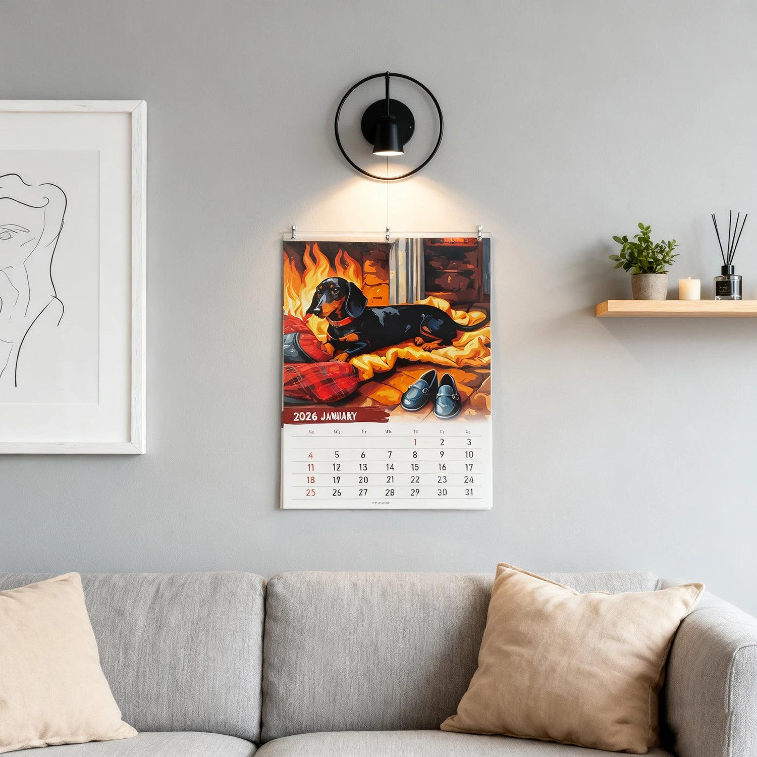 2026 Calendar Dachshund Hangable Wall